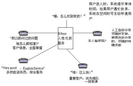 基于CTI(電信和計(jì)算機(jī)集成)技術(shù)和call center(呼叫中心)技術(shù)的INtess客戶服務(wù)平臺(tái),積累網(wǎng)上600多套設(shè)備業(yè)務(wù)開發(fā)和運(yùn)行實(shí)踐的經(jīng)驗(yàn),運(yùn)用專業(yè)化的設(shè)計(jì),全面解決電信客戶服務(wù)中的難題: