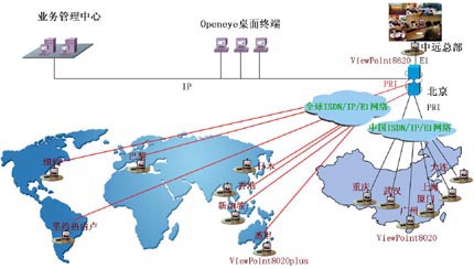 中國遠洋(集團)公司全球會議電視系統(tǒng)覆蓋全國13個分部和全球8個分公司,系統(tǒng)主會場在中遠集團公司總部。系統(tǒng)采用ISDN、E1、IP混合組網(wǎng),使用了一套ViewPoint 8620視訊交換平臺、20套ViewPoint8020plus視訊終端和3套Openeye桌面終端,實現(xiàn)了中遠(集團)公司和全球所有分支機構之間的遠程會議和業(yè)務培訓。