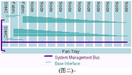 I2C總線使用100Khz時(shí)鐘和3.3V信號。ATCA規(guī)范制定要求2個IPMB總線,分別冠以IPMB-A和IPMB-B,兩條總線合一稱之為IPMB-0。IPMB可以以雙總線或雙星型配置方式實(shí)現(xiàn)。之所以要求雙IPMB總線是為了保證系統(tǒng)管理子系統(tǒng)的可靠性。IPMB總線被用作聯(lián)接ShMC與ATCA單板和ATCA機(jī)架中FRUs的橋梁。雙IPMB總線可同時(shí)被使用以加倍傳輸頻寬,但設(shè)計(jì)者必須考慮萬一其中一條IPMB總線失靈所帶來的沖擊。典型的ATCA背板上系統(tǒng)管理間的互聯(lián)如下圖所示,在背板上有兩個ShMC槽位,兩個交換槽位,11個節(jié)點(diǎn)槽位和1個風(fēng)扇的連接。值得說明的是管理總線與所有的節(jié)點(diǎn)槽、交換槽通過一對雙備援的ShMC聯(lián)接。