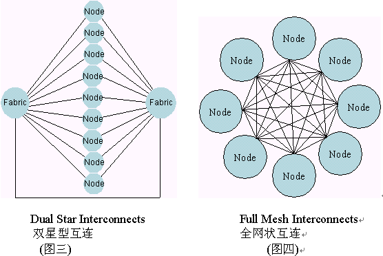 交換接口是ATCA機(jī)框中的主要數(shù)據(jù)傳輸接口。ATCA協(xié)議在每個板子上定義了多達(dá)15個通訊通路。這些通訊通路可以被配置成全網(wǎng)狀拓?fù)浣Y(jié)構(gòu)或雙星型拓?fù)浣Y(jié)構(gòu)。在雙星拓?fù)浣Y(jié)構(gòu)中每塊板同兩個不同的交換板都有通路。交換板在機(jī)框中扮演交換核心的角色。在全網(wǎng)狀拓?fù)浣Y(jié)構(gòu)中,每一個單板與其它任意單板都保持一個鏈接通路。下圖描繪了雙星型和全網(wǎng)狀結(jié)構(gòu)中的內(nèi)部互鏈的配置。