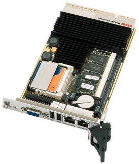 CP303 800MHz主頻版本可在寬溫的環(huán)境下工作,這是因?yàn)镮ntel低功耗處理器可以允許高達(dá)100℃的工作環(huán)境。由于處理器直接燒焊在板卡上,留下較大的散熱空間,這點(diǎn)在4HP的板卡上尤其重要。目前CP303的主頻可高達(dá)1.2GHz。在散熱上根據(jù)主頻與應(yīng)用軟件的使用而不同,介于8W與18W 之間,平均散熱量約為15W。PIII處理器上的大型散熱片可以使其在單風(fēng)扇的機(jī)框中運(yùn)行無(wú)礙。