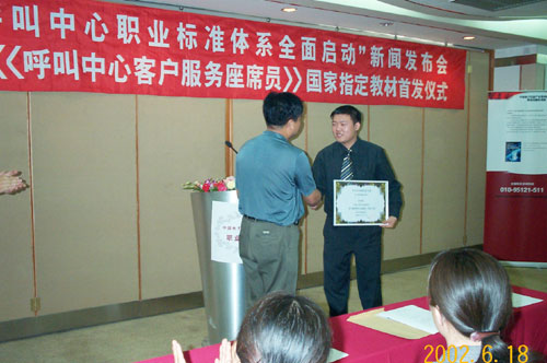 "呼叫中心職業(yè)標(biāo)準(zhǔn)體系全面啟動(dòng)"新聞發(fā)布會(huì),暨《呼叫中心客戶服務(wù)座席員》國(guó)家指定教材首發(fā)儀式于2002年6月18日在北京舉行。呼叫中心行業(yè)全面引入國(guó)家標(biāo)準(zhǔn)管理體系,全國(guó)范圍內(nèi)客戶服務(wù)代表將陸續(xù)持證上崗。