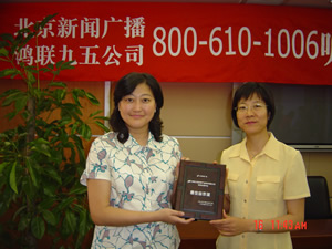 鑒于鴻聯(lián)九五信息處理中信與北京廣播電臺新聞臺的合作中所提供的高水平的服務(wù),近期,新聞臺李臺長在聽眾見面會上親自將最佳合作獎交到鴻聯(lián)九五總經(jīng)理趙薇的手中,并熱切希望開拓今后合作,努力走出一條呼叫中心和媒體合作的新路。