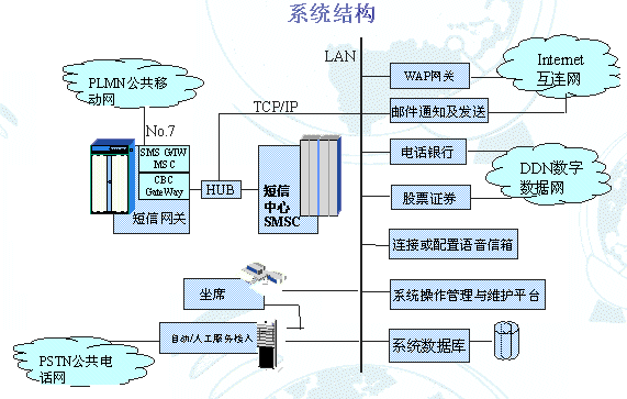 。 開放式系統(tǒng)接口。通過SMPP接口可方便地增加各種ESME,實(shí)現(xiàn)新的信息服務(wù)。