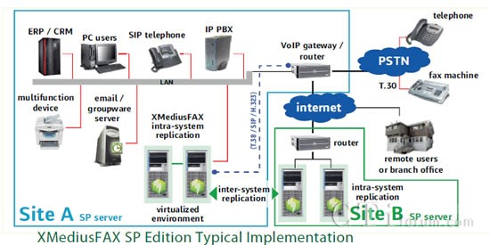 XMediusFAX 的解決方案改善了全球從TDM到IP轉換進程的速度,提高生產力,擁有無縫連接,降低成本等優(yōu)勢. 這些不同的解決方案是對增加嚴格的管理需求, 改善基礎設施戰(zhàn)略(比如, UC, ECM, ‘分支機構’優(yōu)化), 靈活的應用集成(ERP / CRM), 更經濟,增加環(huán)保的核心技術(例如, FoIP, 虛擬機,SIP trunking) 和多功能機(MFDs)等應用的綜合化。