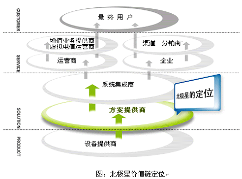北極星軟件以技術(shù)領(lǐng)先見長(zhǎng)。北極星軟件的iAfx ( Intelligent Application Frameworks ) 是一個(gè)融合語(yǔ)音、圖像、消息、多媒體數(shù)據(jù)的分布式通信應(yīng)用架構(gòu),為業(yè)務(wù)處理和應(yīng)用開發(fā)提供了全新的概念和良好的環(huán)境。iAfx?體系既充分考慮了對(duì)現(xiàn)階段運(yùn)營(yíng)商網(wǎng)絡(luò)和基礎(chǔ)構(gòu)架的支持,又兼顧了網(wǎng)絡(luò)和通信技術(shù)向下一代發(fā)展的必然趨勢(shì)。 基于iAfx?架構(gòu),北極星軟件開發(fā)的系列VoIP增值業(yè)務(wù)解決方案既能適應(yīng)現(xiàn)有網(wǎng)絡(luò)環(huán)境,又能向下一代網(wǎng)絡(luò)(NGN)平滑過(guò)渡。