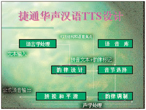 捷通為了加強(qiáng)在語音技術(shù)方面的研發(fā)實(shí)力,于去年聯(lián)合著名語音技術(shù)專家呂士楠先生,共同投資創(chuàng)辦了專門從事漢語語音技術(shù)研究和應(yīng)用的捷通華聲語音公司。由呂先生親自主持捷通華聲語音研發(fā)中心,并在TTS技術(shù)上不斷創(chuàng)新。去年2月,捷通的TTS實(shí)現(xiàn)了中英文混讀的功能;去年5月,實(shí)現(xiàn)語音合成技術(shù)在嵌入式操作系統(tǒng)中的移植;今年7月,推出語音質(zhì)量自然的語音合成系統(tǒng)。