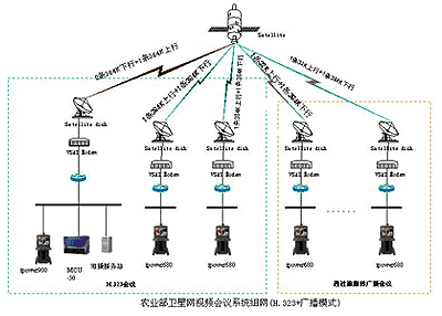 此次農(nóng)業(yè)部視頻會(huì)議網(wǎng)是構(gòu)建在基于衛(wèi)星網(wǎng)的IP網(wǎng)絡(luò)應(yīng)用環(huán)境中,這是寶利通中國(guó)公司首次為客戶建設(shè)運(yùn)行于衛(wèi)星網(wǎng)上視頻會(huì)議系統(tǒng)。系統(tǒng)構(gòu)建于基于ITU