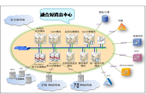 圖一:中興通訊融合短消息中心系統(tǒng)組成