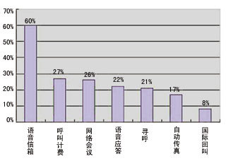 現(xiàn)在常用的辦公交流方式還是以傳統(tǒng)的電話(huà)、互聯(lián)網(wǎng)、電子郵件為主,而Voice Mail的方式卻比較少。可以看出,在Voice Mail上還有很大的發(fā)展空間。