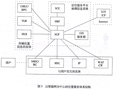 在GSM網(wǎng)絡和CDMA網(wǎng)絡中均有LCS的規(guī)范。在GSM的LCS網(wǎng)絡參考模型中,智能網(wǎng)的業(yè)務控制點(SCP)通過與關口移動位置中心(GMLC)之間具有標準的Lc接口,可以獲得移動終端的位置信息,而在CDMA網(wǎng)絡中,SCP與移動位置中心(MPC)之間也具有標準的L4接口,可以實現(xiàn)類似功能。