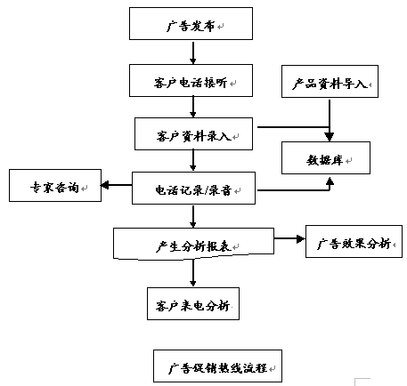 廣告熱線是在呼叫中心系統(tǒng)中設(shè)立專欄,為廣告中的產(chǎn)品或服務(wù)提供更詳細(xì)的資料。首先應(yīng)將需要在廣告中出現(xiàn)的詳細(xì)內(nèi)容或不適合在廣告中出現(xiàn)的內(nèi)容按照要求導(dǎo)入呼叫中心系統(tǒng),準(zhǔn)備就緒后,就在媒體或其他介質(zhì)上做廣告,其中廣告的內(nèi)容中含廣告熱線號碼。電話號碼建議采用800電話,以提高客戶撥打電話的積極性。呼叫中心會記錄打進(jìn)的每一個電話,并且提供完成的系統(tǒng)報表。這樣可以彌補(bǔ)廣告中提供給消費(fèi)者內(nèi)容不足的缺陷,另一方面可以根據(jù)電話量判斷廣告的效果。