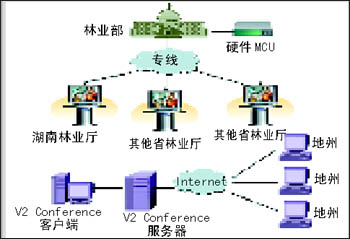 湖南省林業(yè)廳是省政府行業(yè)電子政務(wù)系統(tǒng)的示范單位,非常重視計(jì)算機(jī)網(wǎng)絡(luò)平臺(tái)上的各種軟件應(yīng)用。為了減少會(huì)議支出,提高辦公效率,湖南省林業(yè)廳經(jīng)過(guò)廳務(wù)會(huì)研究決定,希望充分利用全省十四個(gè)地州市現(xiàn)有的計(jì)算機(jī)和音響設(shè)備建立全廳的網(wǎng)絡(luò)視頻會(huì)議系統(tǒng)。在經(jīng)過(guò)公開(kāi)競(jìng)標(biāo)后,V2產(chǎn)品憑借著其優(yōu)越的性能價(jià)格比和售后服務(wù)保證,成功中標(biāo)。