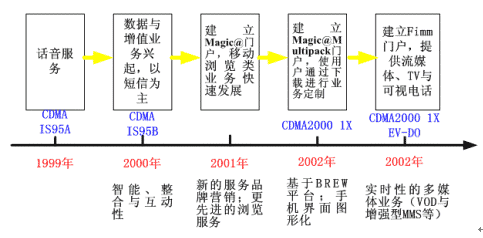 通過與手機(jī)芯片廠商密切合作并依靠韓國終端廠商較強(qiáng)的制造能力,KTF較早地解決了CDMA2000 1X手機(jī)與EV-DO手機(jī)的基本性能問題(性能對比見表3),不僅抵消了用戶的使用顧慮,而且也為不斷推出新的高速數(shù)據(jù)與增值業(yè)務(wù)奠定了較好的終端應(yīng)用基礎(chǔ)。