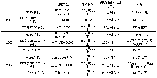 表3 KTF的CDMA2000 1X與EV-DO手機(jī)基本性能對比