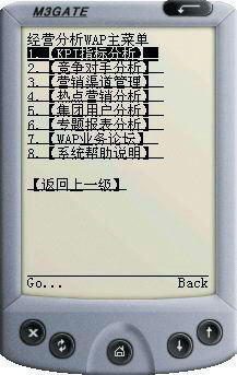 右圖為江蘇移動鹽城分公司企業(yè)經(jīng)營分析系統(tǒng)WAP手機應用界面。