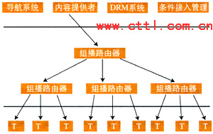 在提供組播業(yè)務(wù)時可采用兩種實現(xiàn)方式。一種方式是利用組建IP網(wǎng)絡(luò)的具有組播功能的路由器提供對一組用戶的組播,信息源僅需將需要進行組播的信息發(fā)送給具有組播功能的路由器,組播路由器將為該信息所提供的組播組編號返回給信息源,信息源將該組播組編號向擬獲得該信息的用戶公布,用戶通過加入相應(yīng)的組播組編號加入到組播組從而接收到發(fā)送到組播組的組播信息。另一種方式是,信息源將信息發(fā)送到一個內(nèi)容分發(fā)設(shè)備,并將欲發(fā)送到的用戶的地址信息發(fā)送到該分發(fā)設(shè)備,由該分發(fā)設(shè)備將信息同時發(fā)送到列表中的所有用戶,完成組播服務(wù)。