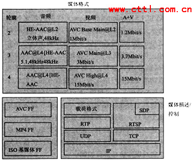 如第二部分所介紹那樣,ISMA致力于多種開(kāi)放標(biāo)準(zhǔn)的集成,在2004年發(fā)布的ISMA2.0中給出了ISMA對(duì)流媒體業(yè)務(wù)的框架結(jié)構(gòu)圖(見(jiàn)圖3)。從圖中可以看出、,ISMA最先希望解決的是與媒體編碼格式、媒體存儲(chǔ)、媒體傳輸(包括載荷輪廓)相關(guān)內(nèi)容。在ISMA目前的體系架構(gòu)中主要希望支持采用MPEG4標(biāo)準(zhǔn)進(jìn)行編碼的媒體以及相應(yīng)的標(biāo)準(zhǔn)存儲(chǔ)格式以及IETF所規(guī)定的標(biāo)準(zhǔn)傳輸協(xié)議,這與ISMA制定標(biāo)準(zhǔn)的準(zhǔn)則相一致。