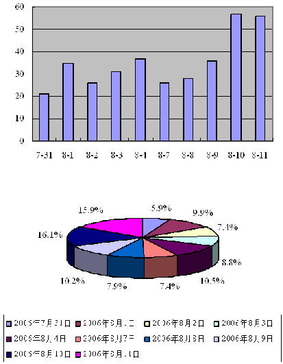 《通告》規(guī)定,擬在第一階段調(diào)整的SP代碼主要是已經(jīng)基礎(chǔ)運(yùn)營商分配并已開通、且希望原代碼后4位與新代碼后4位保持一致的。在《通告》規(guī)定的提交申請(qǐng)有效時(shí)間內(nèi)(2006年7月31日8時(shí)至2006年8月11日17時(shí)),信息產(chǎn)業(yè)部共受理符合《通告》要求的代碼調(diào)整申請(qǐng)353份(有關(guān)信息詳見附表1),共涉及申請(qǐng)單位353家、擬申請(qǐng)SP代碼344個(gè)。