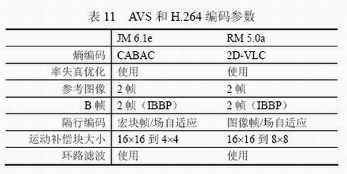 從上面的數據可以看出,在逐行編碼方面,AVS視頻標準的性能與H.264基本一致;在隔行編碼方面,由于AVS視頻標準目前只支持圖像級幀/場自適應編碼,平均有0.5dB的性能差距。