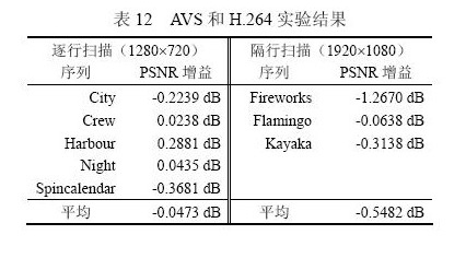 profile的客觀編碼性能。結果為相同碼率條件下峰值信噪比PSNR的增益?梢钥闯觯珹VS相對于MPEG-2標準編碼效率平均提高2.56dB,相比于H.264標準編碼效率略低,平均有0.11dB的損失。