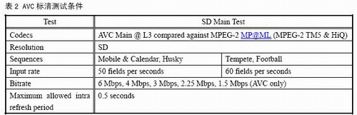 鑒于AVC的編碼效率能夠達到MPEG-2的2倍,我國有關測試機構在測試AVS時,通常把AVS視頻的碼率也設在MPEG-2典型碼率的二分之一或更低,也就是測試AVS編碼效率是MPEG-2的2倍或更高的情況下的AVS視頻的編碼質量是否能夠廣播要求。