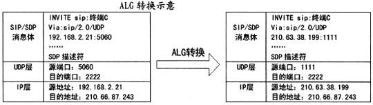 另外,如果ALG判斷出兩臺(tái)終端在同一私網(wǎng)內(nèi)(如圖2中終端A、終端B),將不對(duì)IP包做修改,終端A、B可直接用自己的私有地址建立RTP連接。
