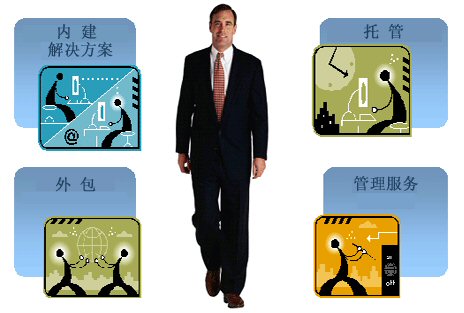 內(nèi)建——作為終端用戶的企業(yè)從供應(yīng)商那里購買一個解決方案然后安裝在自己那里。系統(tǒng)可以由終端用戶自己,咨詢顧問公司或者供應(yīng)商來安裝。一旦系統(tǒng)安裝完畢之后終端用戶就可以自己管理它或者由管理服務(wù)提供商(通常是咨詢顧問公司或者外包商)進行管理。