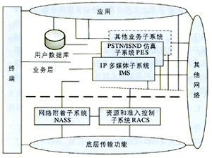 - PSTN/ISDN仿真子系統(tǒng)(PES):為經(jīng)過(guò)網(wǎng)關(guān)連接到IP網(wǎng)的傳統(tǒng)電話(huà)終端仿真PSTN/ISDN網(wǎng)絡(luò),保證傳統(tǒng)PSTN/ISDN業(yè)務(wù)的可用性和一致性,使得終端用戶(hù)不會(huì)意識(shí)到其實(shí)并沒(méi)有連接到PSTN/ISDN網(wǎng)絡(luò)。