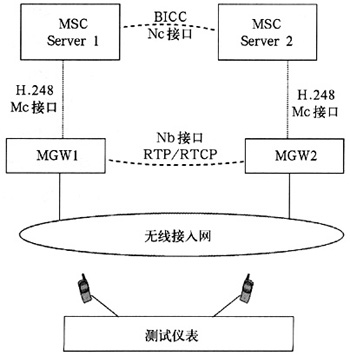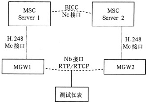 主要是通過測(cè)試儀表模擬兩個(gè)NGN網(wǎng)絡(luò)的終端用戶,首先通過同NGN網(wǎng)絡(luò)的信令交互建立起這兩個(gè)用戶之間的呼叫連接,然后在該連接上模擬發(fā)送和接收測(cè)試語音流,通過對(duì)收發(fā)語音信號(hào)的比較,來測(cè)試出端到端的語音質(zhì)量,并且能提供PESQ值和時(shí)延值,圖3為主動(dòng)式語音質(zhì)量測(cè)試的結(jié)構(gòu)圖。