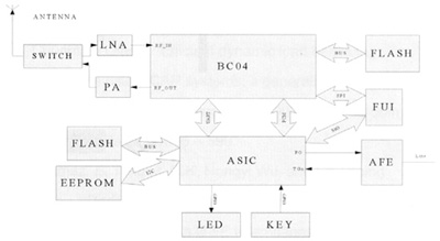 其中,BC04支持最大4個(gè)活動(dòng)連接(包括耳機(jī)),同時(shí)支持兩路SCO語音,所以語音通過PCM和ASIC PCM相接可以有多路被送到模擬端,從而實(shí)現(xiàn)3方通話。ASIC部分實(shí)現(xiàn)PCM語音數(shù)據(jù)與模擬語音信號(hào)的相互轉(zhuǎn)換,通過發(fā)送和接收PSTN信令,負(fù)責(zé)對人機(jī)界面的控制。它通過GPIO(General