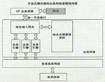 其功能實(shí)體包括:綜合接入網(wǎng)關(guān),可屏蔽底層網(wǎng)絡(luò)細(xì)節(jié)、實(shí)現(xiàn)跨網(wǎng)絡(luò)的業(yè)務(wù)統(tǒng)一接入;業(yè)務(wù)引擎,可與底層網(wǎng)絡(luò)交互,實(shí)現(xiàn)具體的業(yè)務(wù)服務(wù)功能;綜合支撐管理系統(tǒng)將實(shí)現(xiàn)統(tǒng)一的用戶管理、終端管理、業(yè)務(wù)管理和統(tǒng)一的計(jì)費(fèi)管理的支撐服務(wù)。應(yīng)該說,SCE解決了在這樣一個(gè)開放式橫向架構(gòu)業(yè)務(wù)網(wǎng)絡(luò)下,如何快速有效地提供豐富、高質(zhì)量和個(gè)性化的跨網(wǎng)業(yè)務(wù)的問題。它的功能定位非常明確,那就是供SP業(yè)務(wù)開發(fā)人員開發(fā)基于綜合接入網(wǎng)關(guān)的電信增值業(yè)務(wù)。