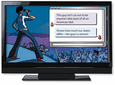 圖1:用戶可以一邊看“美國偶像”,一邊通過電視機向朋友發(fā)送短信,同時還研究最新競爭對手的背景。