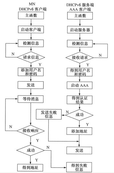 當(dāng)DHCPv6服務(wù)器調(diào)用子進(jìn)程執(zhí)行AAA客戶端程序后,AAA客戶端將把從MN傳過來的密碼和用戶名添加到認(rèn)證請求選項(xiàng)中,向AAAL進(jìn)行認(rèn)證。AAAL將收到的消息轉(zhuǎn)發(fā)給AAAH服務(wù)器,AAAH收到認(rèn)證請求后進(jìn)行認(rèn)證。如用戶名和密碼正確,則返回Accecpt響應(yīng)消息,標(biāo)志認(rèn)證成功;如用戶名或者密碼錯(cuò)誤,則返回Reject響應(yīng)消息,標(biāo)志認(rèn)證失敗。AAAL收到認(rèn)證回復(fù)消息后記錄認(rèn)證信息,下次認(rèn)證時(shí)只需詢問AAAL,減少認(rèn)證步驟。