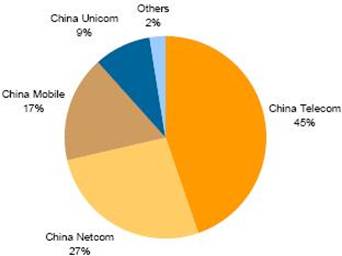 圖2:2007年中國(guó)運(yùn)營(yíng)商Wi-Fi熱點(diǎn)市場(chǎng)份額 (占單位布署量的百分比)