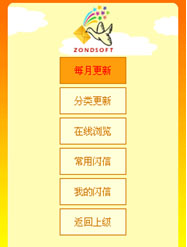 進入“發(fā)送閃信”后發(fā)現(xiàn)動畫的內(nèi)容細致的進行了分類,共有 “好玩、動作、傳情、祝福、感慨”五大類。但是初次安裝閃信軟件時,這些分類里的動畫內(nèi)容是沒有的,需要進入“更新閃信“功能項,更新安裝“常用閃信。”在“常用閃信”安裝不完整的情況下,每次進入“更新閃信”功能項,系統(tǒng)都會提示安裝常用閃信。大家還可以選擇“更新閃信”功能項里面的“每月更新”。