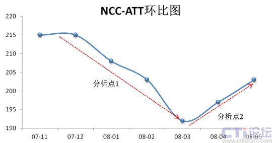 從上圖可見:NCC的ATT自07年11月至08年5月,以今年3月為拐點,呈現(xiàn)先降后升,兩種截然不同的走勢,不能簡單歸結(jié)為新人上線,事實上NCC從2007年7月開臺以來每個月都有一批新人上線。那么3月份后的上升走勢是否合理?導(dǎo)致上升的主因是什么?如何調(diào)控?