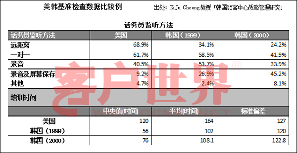 上圖是全南大學(xué)教授Ki Ju Cheong調(diào)查比較韓國(guó)和美國(guó)客服中心后的報(bào)告書的一部分。Ki Ju Cheong教授自稱是因分析客服中心標(biāo)準(zhǔn)指數(shù)聞名于世的美國(guó)Purdue大學(xué)安東博士的學(xué)生。通過(guò)這個(gè)圖表可以簡(jiǎn)單看出韓國(guó)客服中心經(jīng)營(yíng)的改善狀況。