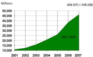 如今的全球化經(jīng)濟(jì)正在促使企業(yè)打破同事、合作伙伴、供應(yīng)商和客戶之間的地域界限。在許多情況下,面對面的溝通協(xié)作既花費(fèi)昂貴又不合時宜,這推動企業(yè)開始轉(zhuǎn)向召開語音會議。對語音會議需求的復(fù)合年增長率(CAGR)已達(dá)到28%,每年的通話時間很快將超過500億分鐘,如圖1所示。