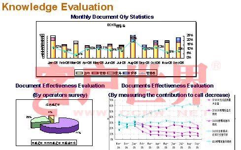 實(shí)際上我告訴大家,知識管理有兩點(diǎn):第一點(diǎn)就是說利用信息內(nèi)容和專家技能來改變企業(yè)創(chuàng)新的能力。我這個定義有很多,我這個定義是引用了IBM公司的定義。大家可以看到,利用我們的專家技能,所有的知識管理最重要的一個是什么呢?就是我們的知識活動,要有人去參與我們的知識活動當(dāng)中來,讓我們的活動升值。因?yàn)槲以?jīng)有一個體會,作為呼叫中心來說,流失率永遠(yuǎn)都是很大的,你辛苦的培養(yǎng)了一個員工,這個員工工作了一年以后,他走掉了,他走掉了以后什么都沒有留下。因?yàn)榍耙欢螘r間我自己有一個體會,我去閱讀我們的知識庫的時候,我看到了2004年的時候,我的一個員工寫的一幅文章,他分享了他的經(jīng)驗(yàn),但是這個員工我都記不得他的相貌,但是我讀到的時候,我還是感覺到這個員工就好像在我們這里工作一樣,實(shí)際上這就是簡單的知識管理,知識管理人走了以后,會把他的經(jīng)驗(yàn)保存下來,說得不好聽一點(diǎn),會世代相傳,所以培養(yǎng)你的員工,投入了這么大的成本,讓他把經(jīng)驗(yàn)分享下來,保存下來,讓后來的同事讀了以后,還會豐富它,所以說這就是知識管理,所以很多人感覺到知識管理就是知識提供,我是把很多的信息提供過來就可以了,實(shí)際不一樣。
