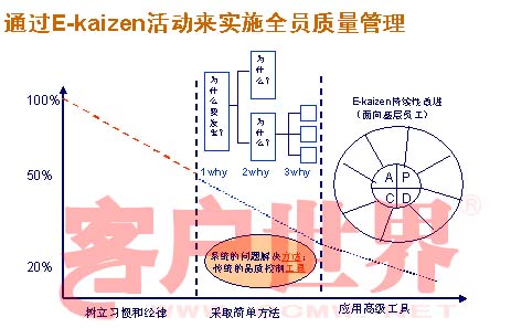 實(shí)際上推廣全員的質(zhì)量管理,最主要是要全員參與,那所有的全員為什么要參與全員的質(zhì)量管理?我們要怎么去引導(dǎo)我們的一線員工,讓他們參與到這個質(zhì)量管理來。實(shí)際上我們感到很簡單,為什么呢?因?yàn)槲覀儗T工去說,每個員工到呼叫中心工作的員工,我都不希望他在這個呼叫中心能工作很多年,我希望他工作兩年以后,能找到更好的職位,能掙到更多的薪水,所以我對員工的要求是這樣,在整個呼叫中心做的這兩年,你要學(xué)習(xí)一種方法,你學(xué)會了這種方法以后,你無論干什么工作,都會很出類拔萃,我們就在員工里邊推廣這種自己去發(fā)現(xiàn)問題,解決問題的能力。