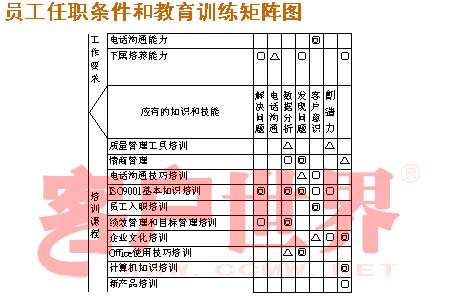 剛才講了,從大的方面到小的方面所有培訓(xùn)的定義,下面給大家分享一個工具,我感覺這個工具也不是特別的,只是我感覺特別有用,就是和大家分享怎么樣進(jìn)行員工培訓(xùn)。大家知道每一個企業(yè)都要有JED的描述,都要有MBO,怎么把這兩點(diǎn)結(jié)合起來,通過培訓(xùn)把這兩點(diǎn)串聯(lián)起來?給大家推薦一個矩陣圖,上面是他JE的描述,后面是培訓(xùn)的課程,這是他的技能,通過這個矩陣圖把它關(guān)聯(lián)起來,這樣你就可以了解每一個崗位對培訓(xùn)有哪些具體的要求,對這個崗位要提供哪些內(nèi)容的培訓(xùn)。