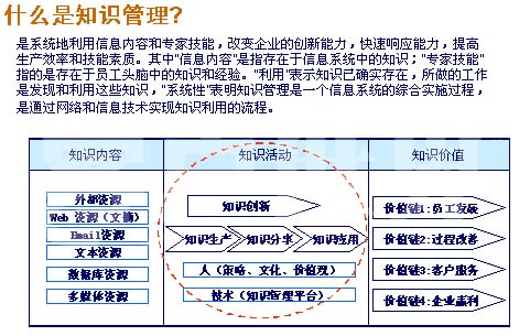 最后就是知識活動,讀了這個信息以后,有哪些意見是不是需要推薦給別人,是不是感覺到這個部分還寫得不完善?所以說鼓勵所有的員工都參與進(jìn)來,對這個知識進(jìn)行評價,進(jìn)行分享和應(yīng)用,所以簡單的這就叫知識管理。