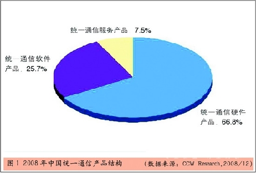 從產(chǎn)品結(jié)構(gòu)角度分析,雖然受硬件設(shè)備價(jià)格因素的影響,統(tǒng)一通信設(shè)備市場(chǎng)仍然是通信市場(chǎng)中最大份額的一部分,市場(chǎng)份額占到66.8%。而且隨著企業(yè)用戶對(duì)于統(tǒng)一通信理解能力的加深,統(tǒng)一通信軟件產(chǎn)品與統(tǒng)一通信服務(wù)越來(lái)越受到更多企業(yè)的認(rèn)同。與2007年相比,統(tǒng)一通信軟件和服務(wù)產(chǎn)品市場(chǎng)份額有一定比例的增加。2008年,統(tǒng)一通信軟件產(chǎn)品達(dá)到市場(chǎng)份額的25.7%,特別是統(tǒng)一通信服務(wù)產(chǎn)品,增長(zhǎng)迅速,市場(chǎng)份額超過(guò)7.5%。