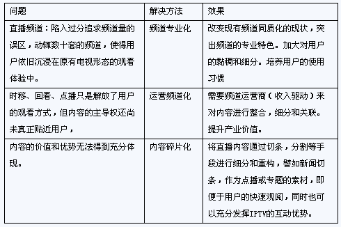 IPTV發(fā)展中,傳統(tǒng)視頻業(yè)務(wù)既是切入點(diǎn),同時(shí)也是業(yè)務(wù)收入的重要來源。但目前視頻業(yè)務(wù)的價(jià)值還未得到充分體現(xiàn)。互動(dòng)性優(yōu)勢(shì)還未得到充分挖掘。