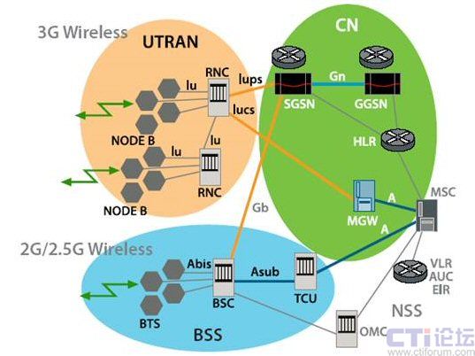 (RNC) 這一元素。在 3G UMTS 網絡中,RNC 可執(zhí)行無線電資源管理、移動管理和加密功能,它可通過媒體網關連接至電路交換核心網絡,實現(xiàn)電路交換語音服務,此外,它還可連接至數(shù)據(jù)包交換核心網絡中的