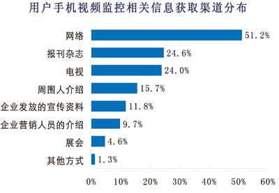 另一方面,運營商的宣傳不到位。從諾達咨詢調(diào)查數(shù)據(jù)來看,用戶目前獲得手機視頻監(jiān)控相關信息的主要渠道是互聯(lián)網(wǎng),有51%的用戶是通過互聯(lián)網(wǎng)了解手機視頻監(jiān)控的,而從傳統(tǒng)的電視媒體和報刊雜志獲得相關信息的用戶僅僅約各占24%,通過相關手機視頻監(jiān)控企業(yè)發(fā)放宣傳資料和介紹獲取相關信息的用戶各占12%和10%。由此可見,手機視頻監(jiān)控的宣傳尚不到位,導致消費者不能通過多方渠道獲取相關信息。