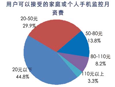 目前的資費標準與用戶20元以下的資費期望值存在很大差距,如果個人或家庭用戶的資費可以降低到20-50元,手機視頻監(jiān)控服務將可以被大多數(shù)用戶所接受。
