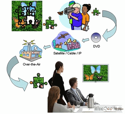 圖1. 電視信號從模擬信號轉(zhuǎn)換成數(shù)字信號,最后又恢復為模擬信號