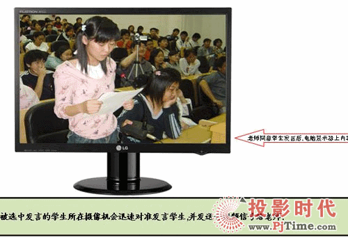 授課教室內(nèi)如果教師在講課,畫面自動切換到教師,如果教師在使用電腦則自動切換到電腦,如果教師讓某學(xué)生發(fā)言,則切換到學(xué)生畫面。